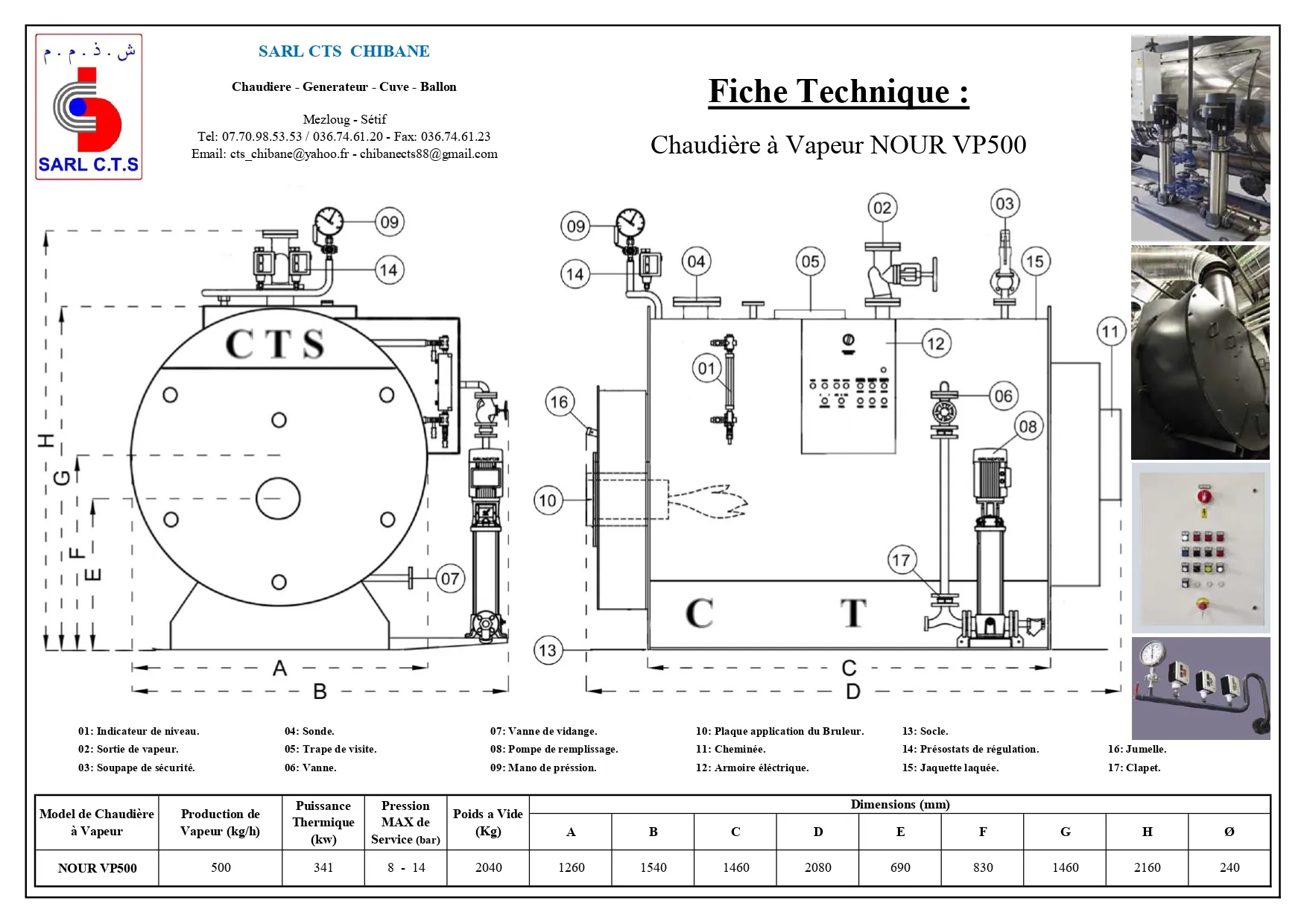 Capacité de production de vapeur : 500 kg/h